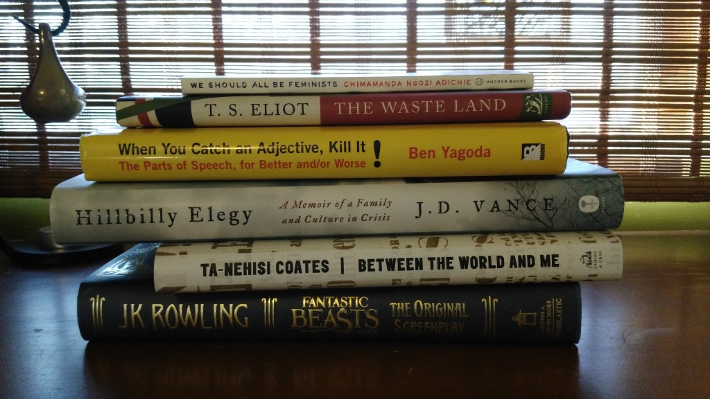 A couple of these are super short, but having a very fast read mixed in with longer reads was nice. Not pictured: the three or four other books which I started and which will probably comprise most of my December pile (I hope).